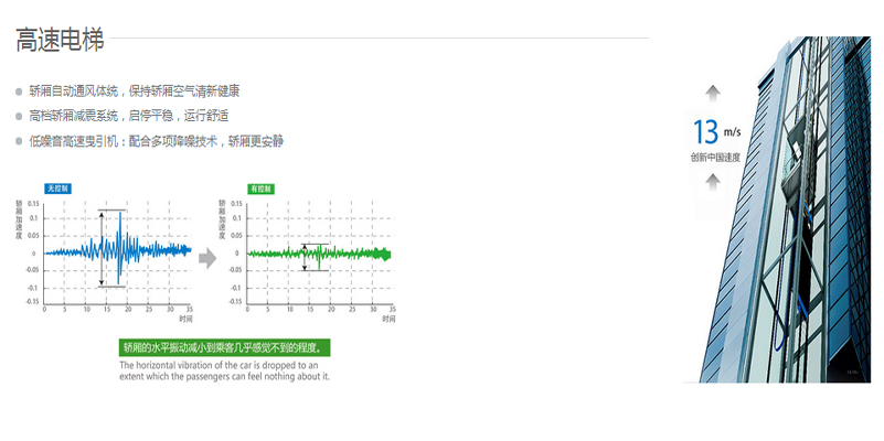 梅輪高速乘客電梯系列,以人性為高度,以科技為武器,以設(shè)計(jì)為先鋒,在技術(shù)上采用新一代永磁同步無(wú)齒輪曳引機(jī)和電腦控制技術(shù),融合了數(shù)據(jù)網(wǎng)絡(luò)化系統(tǒng)和模塊化結(jié)構(gòu),并利用最有效的自檢程序,使電梯系統(tǒng)控制更加靈活精確、高效合理,使乘客在60秒內(nèi)到達(dá)200米的提升高度。