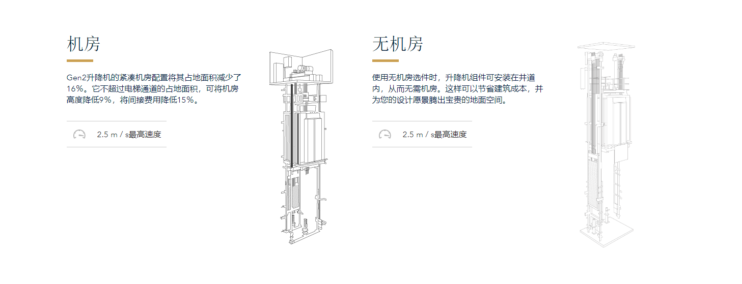 Gen2舉升機具有您所期望的所有風格,舒適性和速度,是住宅和商業(yè)建筑的環(huán)保選擇。從設計,安裝到運行和維護的節(jié)能,空間優(yōu)化,Gen2系統(tǒng)使乘客能夠充分享受您的建筑物。